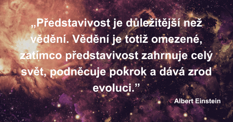 "Představivost je důležitější než vědění. Vědění je totiž omezené, zatímco představivost zahrnuje celý svět, podněcuje pokrok a dává zrod evoluci." - Albert Einstein